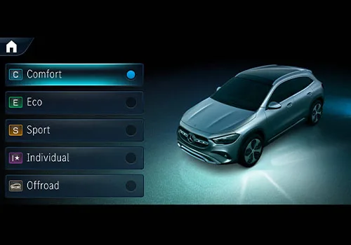 Your vehicle, your driving style. With DYNAMIC SELECT, you can easily determine the driving behaviour of your GLE at the touch of a button. You use driving modes to control the characteristics of the engine, transmission, suspension or steering depending on the driving situation. The driving modes “Eco”, “Comfort”, “Sport”, “Offroad” and “Individual” are available in the GLE SUV.